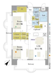 2LDK / 南東・南西 角部屋